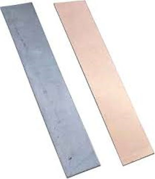 Zinc strip, length 80 mm width 5 mm x thickness 1 mm.