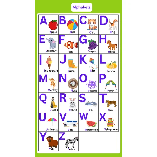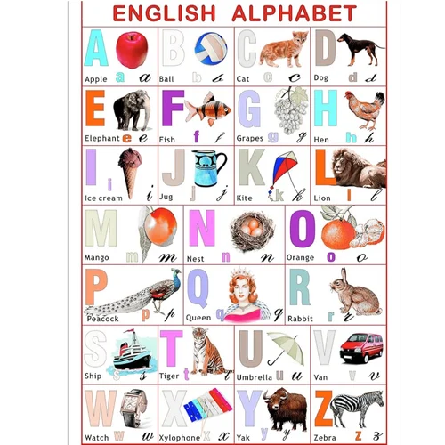 The Alphabet Chart plays a crucial role in oral language development, letter-sound correspondence, pre-reading skills, and vocabulary building. It encourages group learning as children point to letters together, sing the alphabet song, or engage in letter-hunt games with their teachers. The chart also promotes inclusive and interactive learning, ideal for mixed-age groups often found in Anganwadis and rural learning environments.