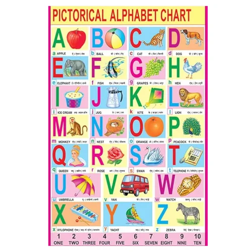 Developed in alignment with the National Curriculum Framework for Foundational Stage (NCFFS) and the NIPUN Bharat Mission, this chart supports multisensory learning, allowing children to see, point, and recite each letter while connecting it with objects from their everyday environment such as A for Apple, B for Ball, C for Cat, and so on. The familiar objects make learning intuitive and memorable. The large print and bold illustrations cater to young learners’ visual learning preferences, making it easier for them to identify letters and build early phonemic awareness.